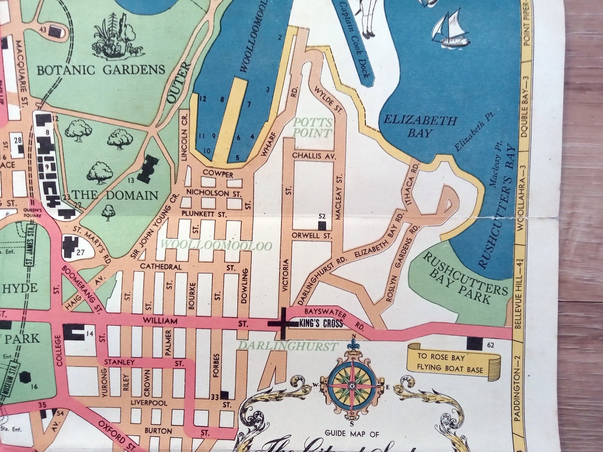 c.1957 Guide map of the City of Sydney including King’s Cross