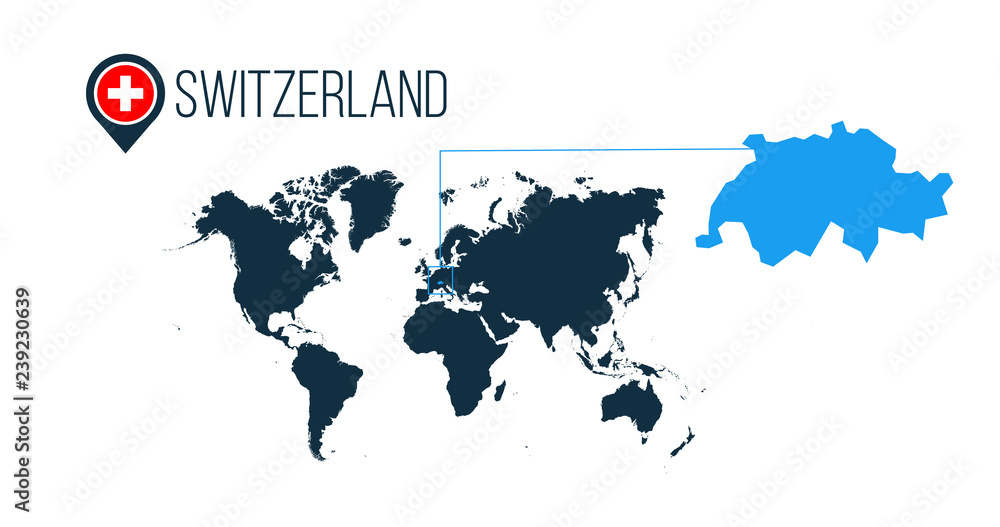 Switzerland location on the world map for infographics. All world